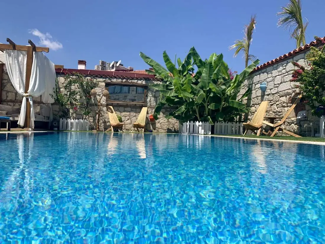 Yer AyırtınMuz ağaçları, begonviller ve güller... Tatlı bahçemizde kendinizi evinizde gibi hissedebileceğiniz bir atmosfere davet ediyoruz. Taş kemerli terasımız, serin havuzumuz ve güneş şezlonglarımız sizleri bekliyor.